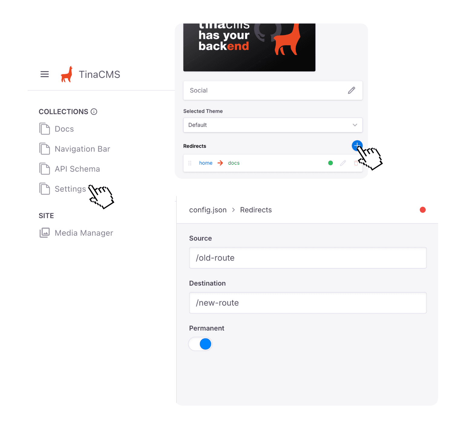 To update or add your redirects using the TinaCMS admin interface, follow these steps: